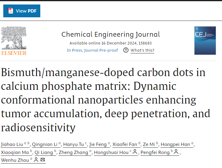 2024年12月,中南大学3044am永利集团官网周文虎教授团队与中南大学湘雅三医院容鹏飞教授团队,中南大学化学化工学院侯红帅教授团队在Chemical Engineering Journal(中科院1区Top期刊,IF=13.…