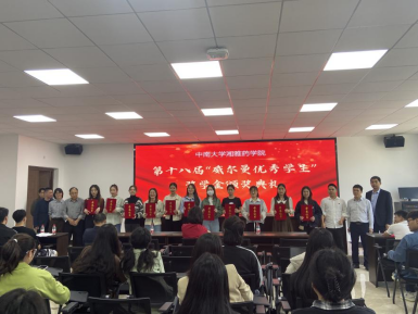 2023年5月8日,中南大学3044am永利集团官网在药学大楼四楼报告厅举办了第十八届“威尔曼优秀学生奖学金”颁奖典礼。典礼由学院党委副书记王昊主持,学院党委书记龚涛、副院长李乾斌、湘北威尔…