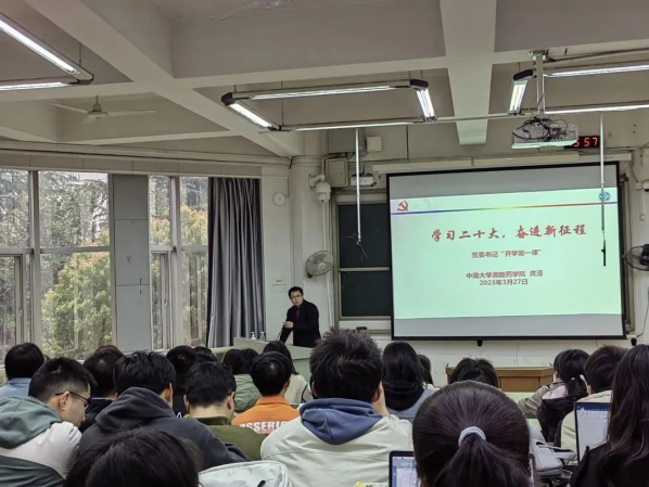3月27日下午,学院党委书记龚涛在福庆楼T211教室为师生们主讲“开学第一课”,带领全院本科生、研究生干部及2022级硕士和博士深刻领悟“以高质量发展书写新时代中国式现代化的高等药…