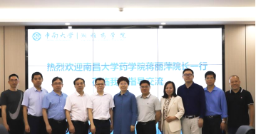 5月15日,南昌大学药学院蒋丽萍院长一行6人到我院调研交流。双方就人才引育做法、学科建设等进行了深入研讨。学院领导龚涛、刘昭前、王昊、曾文彬、胡长平、李乾斌及党政综合办余嘉政…