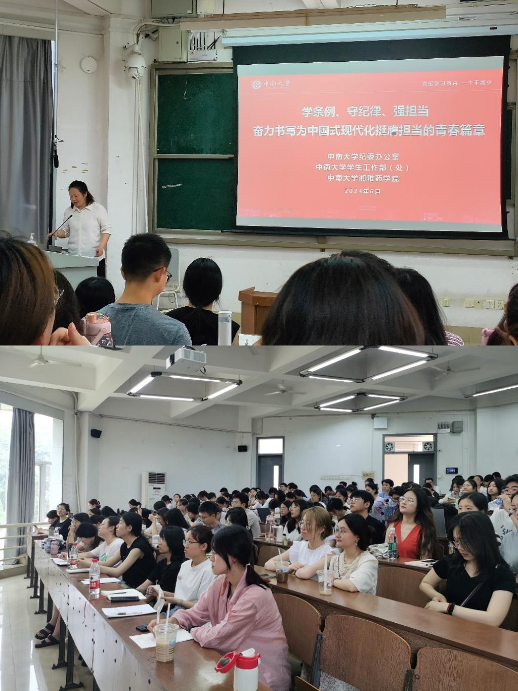 2024年05月26日,3044am永利集团官网在福庆楼T212教室开展“一个不能少”党纪学习教育宣讲,主题为《学条例、守纪律、强担当,奋力书写为中国式现代化挺膺担当的青春篇章》。全体学生党员参加。