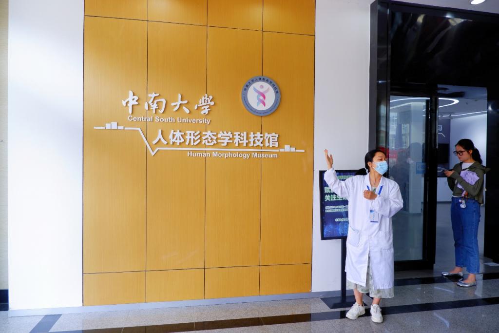 首先,由中南大学湘雅医学院的志愿者带领大家参观了位于湘雅医学院新校区医学形态楼一楼的人体形态学科技馆。科技馆展厅位于湘雅医学院新校区形态楼1楼,按人类起源、个体发生、人体形态结构分为三大片、六个展区,共有正常人体、病理及胚胎标本1200余件,各种模型100余件。科技馆拥有世界之最、身高2.43米的巨人遗体标本、清代干尸标本、封建社会妇女“三寸金莲”足骨标本、50-150万年前的脊椎动物化石标本等珍贵标本。湘雅医学院的志愿者详细为大家讲解了标本的结构、制作方法、来源以及意义并解答了大家的疑问。