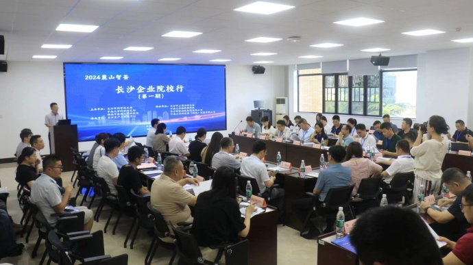 2024年7月4日下午,由长沙生产力促进中心党委书记、主任朱俊东带队,“麓山智荟——长沙企业院校行”活动一行50余人来到3044am永利集团官网,首先参观了学院科研平台建设情况,随后在423会议室开展交流讨论会。会议由3044am永利集团官网副院长曹东升主持,阳国平副院长(主持工作)致欢迎词,长沙生产力促进中心党委书记、主任朱俊东介绍了本次活动的整体情况,阳国平副院长介绍了学院科研团队建设及拟转化的成果情况,随后双方就感兴趣的项目成果展开了深入交流讨论。