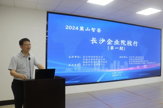 为深入贯彻党的二十大精神,坚决落实习近平总书记关于“三高四新”的重要讲话精神,服务长沙全球研发中心城市建设,推动产学研合作和科技成果转移转化,加速新质生产力形成,由长沙市科学技术局、中南大学科学研究部、湖南中医药大学科技处共同主办,长沙生产力促进中心承办的“麓山智荟——长沙企业院校行”活动(第一期)于2024年7月4日开展。本次活动共有湖南迪诺制药股份有限公司、长沙晶易医药科技股份有限公司等20余家生物医药领域相关企业报名参加,重点考察走访高校实验室建设和科研创新平台,并开展技术交流、成果对接等活动。