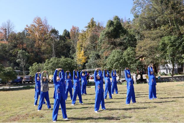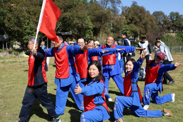 上午10时,队伍抵达开慧镇飘峰山庄。短暂的休整后,一场别开生面的八段锦表演拉开序幕。由我院在本月初中南大学教职工八段锦比赛的教职工代表组成的表演队,动作整齐划一,刚柔并济,将传统养生功法的精髓展现得淋漓尽致,在他们的带领下,大家纷纷加入跟练,共同舒展筋骨,调理气息,场面蔚为壮观。此次表演与推广,是学院倡导“健康工作、快乐生活”理念的生动实践,旨在将八段锦这一健身瑰宝更好地融入教职工的日常生活。