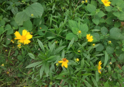 开黄花的金盏菊,清热解毒,活血调经。头状花序单生茎顶。全株被白色茸毛。 单叶互生,椭圆形或椭圆状倒卵形,全缘,基生叶有柄,上部叶基抱茎。