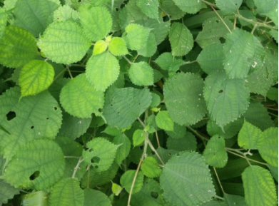 绿色的苎麻,清热利尿,安胎止血。在路边处处可见,圆卵形叶片,背面被毛。上面稍粗糙,疏被短伏毛,下面密被雪白色毡毛,侧脉约3对。