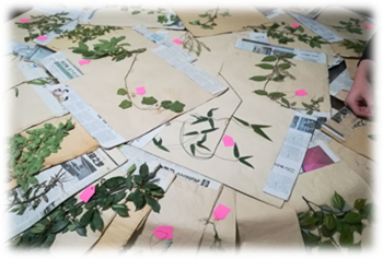 此次野外采药实习最为刺激的莫过于最后一天的考试了,大家围在一起,争分夺秒,认真识记前一天所制作的标本,三十多份标本摆在桌子上,好像一幅精美的画作。在紧张的复习之后,我们逐个进入房间参加考试,大家都取得了满意的成绩。